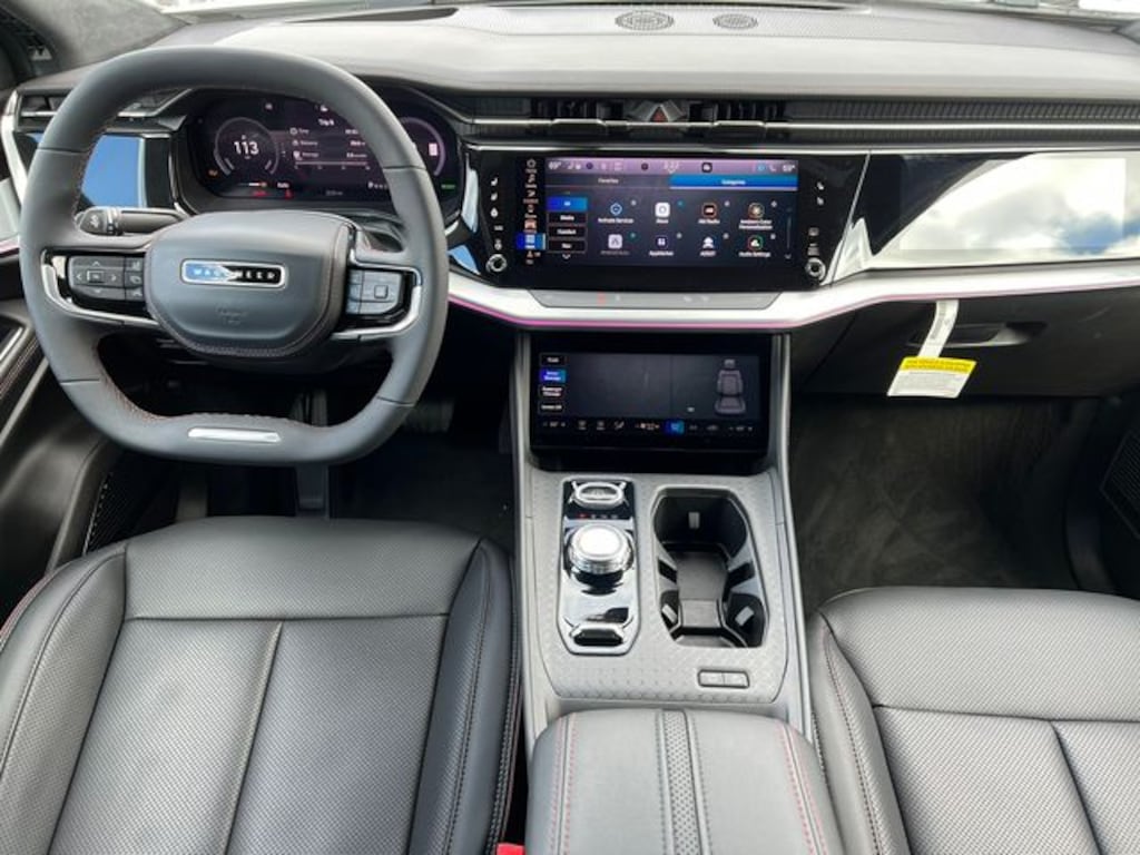19 Speakers, 4-Wheel Disc Brakes, ABS brakes, Air Conditioning, Alloy wheels, AM/FM radio: SiriusXM with 360L, Apple CarPlay/Android Auto, Audio memory, Auto High-beam Headlights, Auto-dimming door mirrors, Auto-dimming Rear-View mirror, Automatic temperature control, Brake assist, Bumpers: body-color, Compass, Delay-off headlights, Driver door bin, Driver vanity mirror, Dual front impact airbags, Dual front side impact airbags, Electronic Stability Control, Emergency communication system: Jeep Connect, Four wheel independent suspension, Front anti-roll bar, Front Bucket Seats, Front Center Armrest w/Storage, Front dual zone A/C, Front fog lights, Front reading lights, Fully automatic headlights, Garage door transmitter, Heads-Up Display, Heated door mirrors, Heated front seats, Heated rear seats, Heated steering wheel, Heavy Duty Suspension, Illuminated entry, Knee airbag, Low tire pressure warning, Memory seat, Navigation System, Neo Ultra Lux III Seats, Occupant sensing airbag, Outside temperature display, Overhead airbag, Panic alarm, ParkView Rear Back-Up Camera, Passenger door bin, Passenger vanity mirror, Power door mirrors, Power driver seat, Power Liftgate, Power moonroof, Power passenger seat, Power steering, Power windows, Premium audio system: UConnect 5, Quick Order Package 25E Launch Edition, Radio data system, Radio: Uconnect 5 Nav w/12.3" Display, Rain sensing wipers, Rear air conditioning, Rear anti-roll bar, Rear dual zone A/C, Rear reading lights, Rear seat center armrest, Rear side impact airbag, Rear window defroster, Rear window wiper, Remote keyless entry, Security system, Speed control, Speed-sensing steering, Speed-Sensitive Wipers, Split folding rear seat, Spoiler, Steering wheel memory, Steering wheel mounted audio controls, TBD Axle Ratio, Telescoping steering wheel, Tilt steering wheel, Traction control, Trip computer, Turn signal indicator mirrors, Two Tone Paint Group, Variably intermittent wipers, Ventilated front seats, Ventilated rear seats, Wheels: 20" x 8.5" Gloss Black Painted Aluminum (DISC), Wheels: 20" x 8.5" Painted Aluminum Design 1.