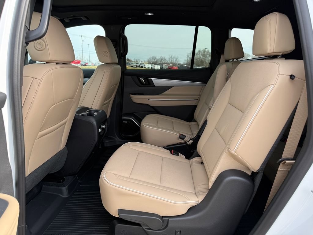AWD, 110-Volt Power Outlet, 12 Speakers, 1st and 2nd Row All-Weather Floor Liners, 2nd Row 1-Touch Flat Folding Seat, 3rd Row 60/40 Power Split-Folding Bench Seat, 3rd Row All-Weather Floor Liner, 3rd row seats: split-bench, 4-Wheel Disc Brakes, ABS brakes, Air Conditioning, Alloy wheels, AM/FM radio: SiriusXM with 360L, Apple CarPlay/Android Auto, Auto High-beam Headlights, Auto-dimming door mirrors, Auto-dimming Rear-View mirror, Automatic temperature control, Bose Premium 12-Speaker Audio System with Subwoofer, Brake assist, Bumpers: body-color, Compass, Delay-off headlights, Driver 4-Way Power Lumbar Seat Adjuster, Driver 8-Way Power Seat Adjuster, Driver door bin, Driver vanity mirror, Dual front impact airbags, Dual front side impact airbags, Electronic Stability Control, Emergency communication system: OnStar and Buick connected services capable, Floor Liner Package, Four wheel independent suspension, Front anti-roll bar, Front Bucket Seats, Front Center Armrest, Front dual zone A/C, Front Passenger 4-Way Power Lumbar Seat Adjuster, Front Passenger 6-Way Power Seat Adjuster, Front reading lights, Fully automatic headlights, Head-Up Display, Heated door mirrors, Heated Driver and Front Passenger Seats, Heated front seats, Heated steering wheel, Heated Wiper Park, Illuminated entry, Inside Rearview Auo-Dimming Rear Camera Mirror, Integrated Cargo Liner, Leather steering wheel, Leatherette Seat Trim, Low tire pressure warning, Memory Settings, Navigation System, Occupant sensing airbag, Outside temperature display, Overhead airbag, Overhead console, Panic alarm, Passenger door bin, Passenger vanity mirror, Power door mirrors, Power driver seat, Power Liftgate, Power Package, Power Panoramic Sunroof with Sunshade, Power passenger seat, Power steering, Power windows, Preferred Equipment Group 1SD, Premium audio system: Buick Infotainment System, Radio data system, Radio: Infotainment Center, Rear air conditioning, Rear anti-roll bar, Rear reading lights, Rear side impact airbag, Rear window defroster, Rear window wiper, Remote keyless entry, Security system, SiriusXM with 360L Trial Subscription, Speed control, Speed-sensing steering, Spoiler, Steering wheel mounted audio controls, Tachometer, Telescoping steering wheel, Tilt steering wheel, Traction control, Trip computer, Turn signal indicator mirrors, Universal Home Remote, Variably intermittent wipers, Vertical Cargo Net, Voltmeter, Wheels: 20 Alloy with Medium Android Finish, Wireless Apple CarPlay, Wireless Google Android Auto, AWD.