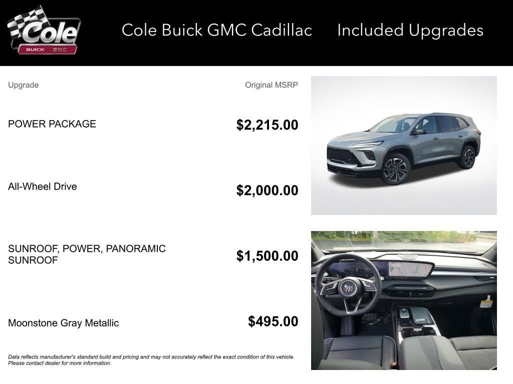 Price includes: $500 - Buick & GMC GM Financial APR & NCC Consumer Cash Program: $500 Allowance and 6.99% APR for 36 months. $30.87 per $1000 financed. Available to well qualified buyers who finance through GM Financial. XHD, NCC. Exp. 03/02/2026 WE DELIVER! BUY ONLINE-TEXT-EMAIL-CHAT-PHONE AND WE WILL DELIVER YOUR NEXT VEHICLE TO YOUR DOOR! FROM OUR SALES FLOOR TO YOUR DOOR! IT'S THAT EASY! moonstone gray metallic 2026 Buick Enclave Sport Touring AWD 8-Speed Automatic 2.5L DOHC