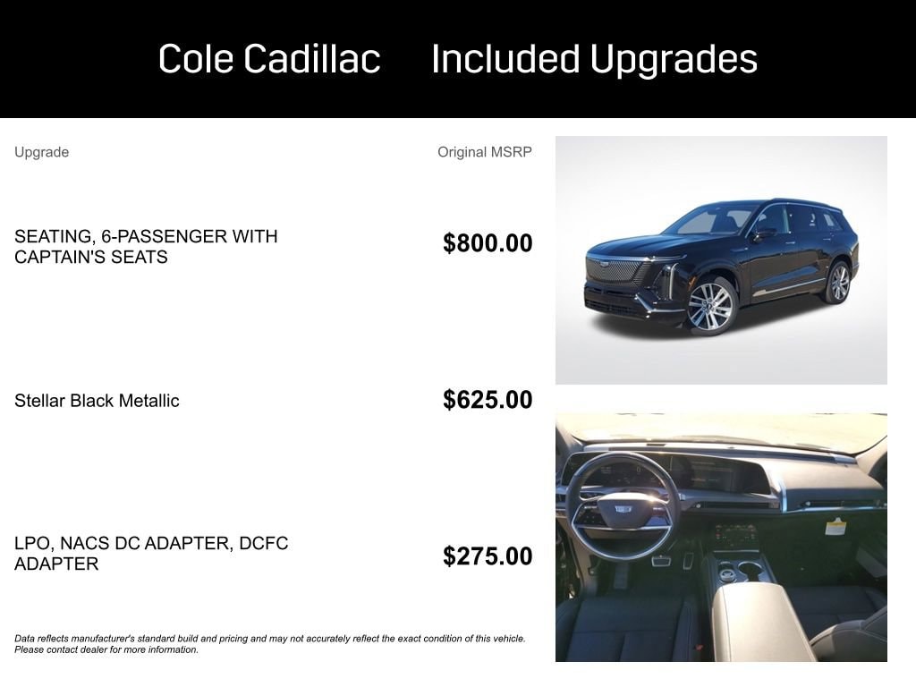 3rd row seats: bench, 4-Wheel Disc Brakes, 6-Passenger Seating with Captains Seats, ABS brakes, Adaptive suspension, Air Conditioning, AKG Studio 23-Speaker System with Dolby Atmos, Alloy wheels, AM/FM radio: SiriusXM with 360L, Auto High-beam Headlights, Auto-dimming door mirrors, Automatic temperature control, Brake assist, Bumpers: body-color, Compass, Delay-off headlights, Driver 4-Way Power Lumbar Seat Adjuster, Driver 8-Way Power Seat Adjuster, Driver door bin, Driver Power Massage Seat, Driver vanity mirror, Dual front impact airbags, Dual front side impact airbags, Electronic Stability Control, Emergency communication system: OnStar Services capable, Four wheel independent suspension, Front anti-roll bar, Front Bucket Seats, Front Center Armrest, Front dual zone A/C, Front Passenger 4-Way Power Lumbar Seat Adjuster, Front Passenger 8-Way Power Seat Adjuster, Front Passenger Power Massage Seat, Front reading lights, Fully automatic headlights, Garage door transmitter, Heated door mirrors, Heated Front Driver and Passenger Seats, Heated front seats, Heated rear seats, Heated steering wheel, Illuminated entry, Inteluxe Seat Trim, Knee airbag, Low tire pressure warning, Memory seat, NACS DC Adapter, Navigation system: Google Automotive Services Capable, Occupant sensing airbag, Outside temperature display, Overhead airbag, Overhead console, Panic alarm, Passenger door bin, Passenger vanity mirror, Power door mirrors, Power driver seat, Power Liftgate, Power moonroof: Panoramic, Power passenger seat, Power steering, Power windows, Preferred Equipment Group 1SC, Radio data system, Radio: Curved 33 Diagonal Advanced Color LED Display, Rain sensing wipers, Rear air conditioning, Rear anti-roll bar, Rear dual zone A/C, Rear reading lights, Rear window defroster, Rear window wiper, Remote keyless entry, Security system, SiriusXM with 360L Trial Subscription, Speed control, Speed-sensing steering, Split folding rear seat, Spoiler, Sport Suspension, Steering wheel memory, Steering wheel mounted audio controls, Telescoping steering wheel, Tilt steering wheel, Traction control, Trip computer, Turn signal indicator mirrors, Variably intermittent wipers, Ventilated Front Driver and Passenger Seats, Ventilated front seats, Wheels: : 21 Bright Silver Finish.