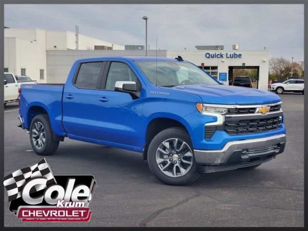 Silverado 1500 LT, 4D Crew Cab, 2.7L I4 Turbocharged DOHC 16V LEV3-SULEV30 310hp, 8-Speed Automatic, 4WD, Riptide Blue Metallic, Jet Black Cloth, 10-Way Power Driver Seat w/Lumbar, 120-Volt Bed Mounted Power Outlet, 120-Volt Interior Power Outlet, Convenience Package, Dual Rear USB Ports (Charge Only), Dual-Zone Automatic Climate Control, Heated Driver & Front Outboard Passenger Seats, Heated Steering Wheel, Hitch Guidance, Keyless Open & Start, LED Cargo Area Lighting, Manual Tilt/Telescoping Steering Column, Trailering Package, Wrapped Steering Wheel, 12.3 Multicolor Reconfigurable Digital Display, 3.42 Rear Axle Ratio, 4-Wheel Disc Brakes, 40/20/40 Front Split-Bench Seat, 6 Speakers, 6-Speaker Audio System, ABS brakes, Air Conditioning, All-Star Edition, Alloy wheels, AM/FM radio: SiriusXM with 360L, Apple CarPlay/Android Auto, Auto High-beam Headlights, Auto-Locking Rear Differential, Automatic Emergency Braking, Automatic temperature control, Bluetooth® For Phone, Brake assist, Bumpers: chrome, Chrome Mirror Caps, Cloth Seat Trim, Color-Keyed Carpeting Floor Covering, Compass, Deep-Tinted Glass, Delay-off headlights, Driver door bin, Driver vanity mirror, Dual front impact airbags, Dual front side impact airbags, Electric Rear-Window Defogger, Electronic Cruise Control, Electronic Stability Control, Emergency communication system: OnStar, Following Distance Indicator, Forward Collision Alert, Front anti-roll bar, Front Center Armrest w/Storage, Front dual zone A/C, Front Frame-Mounted Black Recovery Hooks, Front Pedestrian Braking, Front reading lights, Front wheel independent suspension, Fully automatic headlights, HD Rear Vision Camera, Heated door mirrors, Heated front seats, Heated steering wheel, Illuminated entry, Integrated Trailer Brake Controller, IntelliBeam Automatic High Beam On/Off, Lane Keep Assist w/Lane Departure Warning, Low tire pressure warning, Occupant sensing airbag, OnStar Services Capable, Outside temperature display, Overhead airbag, Overhead console, Panic alarm, Passenger door bin, Passenger vanity mirror, Power door mirrors, Power driver seat, Power Front Windows w/Driver Express Up/Down, Power Front Windows w/Passenger Express Down, Power Rear Windows w/Express Down, Power steering, Power windows, Premium audio system: Chevrolet Infotainment 3 Premium, Radio data system, Radio: Chevrolet Infotainment 3 Premium System, Rear 60/40 Folding Bench Seat (Folds Up), Rear reading lights, Rear step bumper, Rear window defroster, Remote keyless entry, Remote Vehicle Starter System, Security system, SiriusXM w/360L Trial Subscription, Speed control, Speed-sensing steering, Split folding rear seat, Standard Suspension Package, Steering Wheel Audio Controls, Steering wheel mounted audio controls, Tachometer, Teen Driver, Telescoping steering wheel, Theft Deterrent System (Unauthorized Entry), Tilt steering wheel, Tire Pressure Monitoring System, Traction control, Trip computer, Variably intermittent wipers, Voltmeter, Wheels: 18 x 8.5 Bright Silver Painted Aluminum, Wheels: 20 x 9 Painted Aluminum, Wi-Fi Hot Spot Capable, Silverado 1500 LT, 4D Crew Cab, 2.7L I4 Turbocharged DOHC 16V LEV3-SULEV30 310hp, 8-Speed Automatic, 4WD, Riptide Blue Metallic, Jet Black Cloth, 10-Way Power Driver Seat w/Lumbar, 120-Volt Bed Mounted Power Outlet, 120-Volt Interior Power Outlet, Convenience Package, Dual Rear USB Ports (Charge Only), Dual-Zone Automatic Climate Control, Heated Driver & Front Outboard Passenger Seats, Heated Steering Wheel, Hitch Guidance, Keyless Open & Start, LED Cargo Area Lighting, Manual Tilt/Telescoping Steering Colum