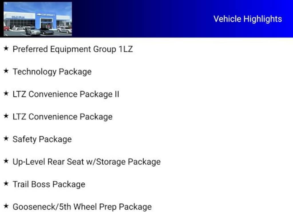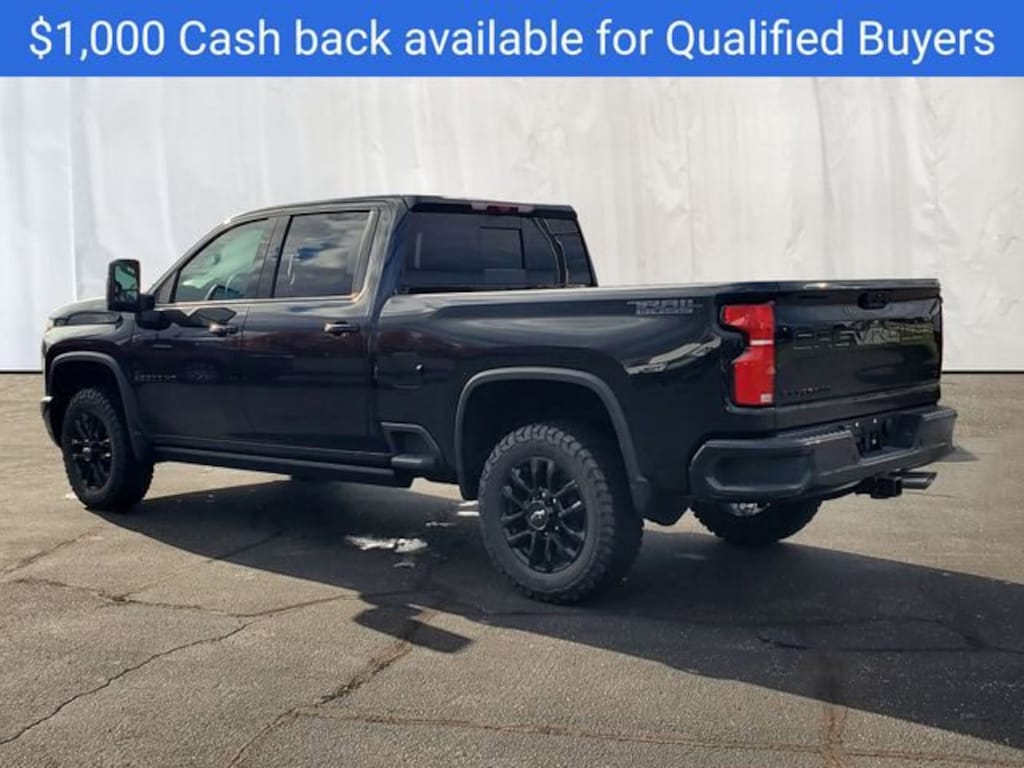 Silverado 2500HD LTZ, 4D Crew Cab, 6.6L V8, 10-Speed Automatic, 4WD, Black, Black Leather, 120-Volt Bed Mounted Power Outlet, 120-Volt Interior Power Outlet, 15 Diagonal Multicolor Head-Up Display, 170 Amp Alternator, 2 Charge/Data USB Ports Inside Center Console, 6-Speaker Audio System, Adaptive Cruise Control, Auto-Dimming Inside Rear-View Mirror, Black Grille Bar w/Chevy Black Bow Tie, Bluetooth® For Phone, BOSE Premium 7-Speaker Sound System, Chevrolet Connected Access Capable, Chrome Door Handles, Chrome Mirror Caps, Color-Keyed Carpeting Floor Covering, Compass, Deep-Tinted Glass, Electric Rear-Window Defogger, Electronic Cruise Control w/Set & Resume Speed, EZ Lift Power Lock & Release Tailgate, Floor-Mounted Center Console, Front Bucket Seats, Front Frame-Mounted Red Recovery Hooks, Front LED Fog Lamps, Front Rain-Sensing Wipers, Front Rubberized Vinyl Floor Mats, Gooseneck/5th Wheel Prep Package, HD Rear Vision Camera, HD Surround Vision, Heated 2nd Row Outboard Seats, Heated Steering Wheel, High Gloss Black Door Handles, High Gloss Black Front Bumper, High Gloss Black Mirror Caps, High Gloss Black Rear Bumper, Hill Descent Control, Hitch Guidance w/Hitch View, In-Vehicle Trailering App System, Keyless Open & Start, LED Cargo Area Lighting, LTZ Convenience Package, LTZ Convenience Package II, Off-Road Suspension, OnStar Services Capable, Power Door Locks, Power Front Windows w/Driver Express Up/Down, Power Rear Windows w/Express Down, Power Sliding Rear Window w/Defogger, Preferred Equipment Group 1LZ, Push Button Start, Rear Camera Mirror, Rear Cross Traffic Alert, Rear Rubberized Vinyl Floor Mats, Rear Wheelhouse Liners, Remote Vehicle Starter System, Safety Alert Seat, Safety Package, Standard Tailgate, Steering Wheel Audio Controls, Suspension Package, Technology Package, Trail Boss Package, Trailer Camera Provisions, Trailer Side Blind Zone Alert, Unauthorized Entry Theft-Deterrent System, Universal Home Remote, Up-Level Rear Seat w/Storage Package, Ventilated Driver & Front Passenger Seats, Wheels: 20 High Gloss Black Painted, Wi-Fi Hotspot Capable, Wireless Charging, Wireless Phone Projection, Wrapped Steering Wheel, Z71 Off-Road Package, 3.73 Rear Axle Ratio, 4-Wheel Disc Brakes, 6 Speakers, 720 Cold-Cranking Amps Heavy-Duty Battery, ABS brakes, Air Conditioning, Alloy wheels, AM/FM radio: SiriusXM with 360L, Apple CarPlay/Android Auto, Auto High-beam Headlights, Auto-dimming door mirrors, Auto-dimming Rear-View mirror, Automatic temperature control, Body-Color Front Bumper, Body-Color Rear Bumper, Brake assist, Bumpers: chrome, Delay-off headlights, Driver door bin, Driver Memory, Driver vanity mirror, Dual front impact airbags, Dual front side impact airbags, Durabed Pickup Bed, Electronic Stability Control, Emergency communication system: OnStar, Front 40/20/40 Split-Bench Seats w/Lockable Storage, Front anti-roll bar, Front Center Armrest w/Storage, Front dual zone A/C, Front fog lights, Front reading lights, Front wheel independent suspension, Fully automatic headlights, Heated door mirrors, Heated front seats, Heated steering wheel, Illuminated entry, LED Smoked Amber Roof Marker Lamps, Low tire pressure warning, Memory seat, Occupant sensing airbag, Outside temperature display, Overhead airbag, Overhead console, Panic alarm, Passenger door bin, Passenger vanity mirror, Perf Leather-Appointed Front Outboard Seat Trim, Power door mirrors, Power driver seat, Power passenger seat, Power steering, Power Sunroof, Power windows, Power-Retractable Black Assist Steps, Premium audio system: Chevrolet Infotainme