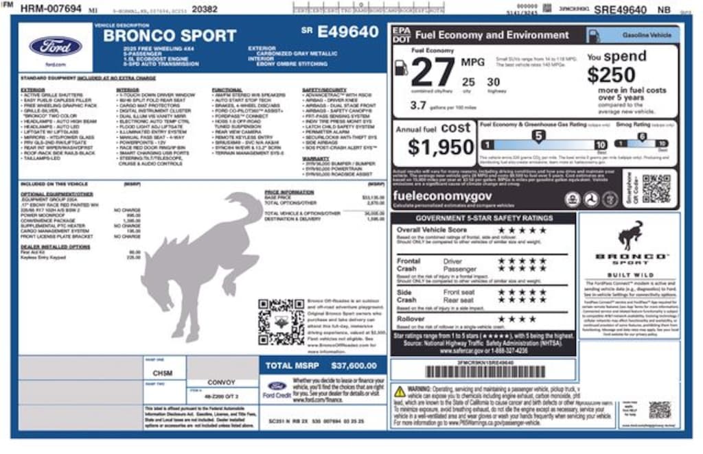Dealer Disclosure: New Car Prices are based off of Ford Employee A/Z Plan price. Sales Tax, Title, License Fee, Registration Fee, Dealer Documentary Fee ($280), Finance Charges and Emission Testing Fees (if applicable) are additional to the advertised price. See Dealer for Details. Price includes: $1000 - 2025 Expanded Military Recognition Exclusive Cash Reward. Exp. 11/19/2025 $1000 - Trade-In Assistance Bonus Cash. Exp. 01/05/2026 $500 - Retail Bonus Cash. Exp. 01/05/2026