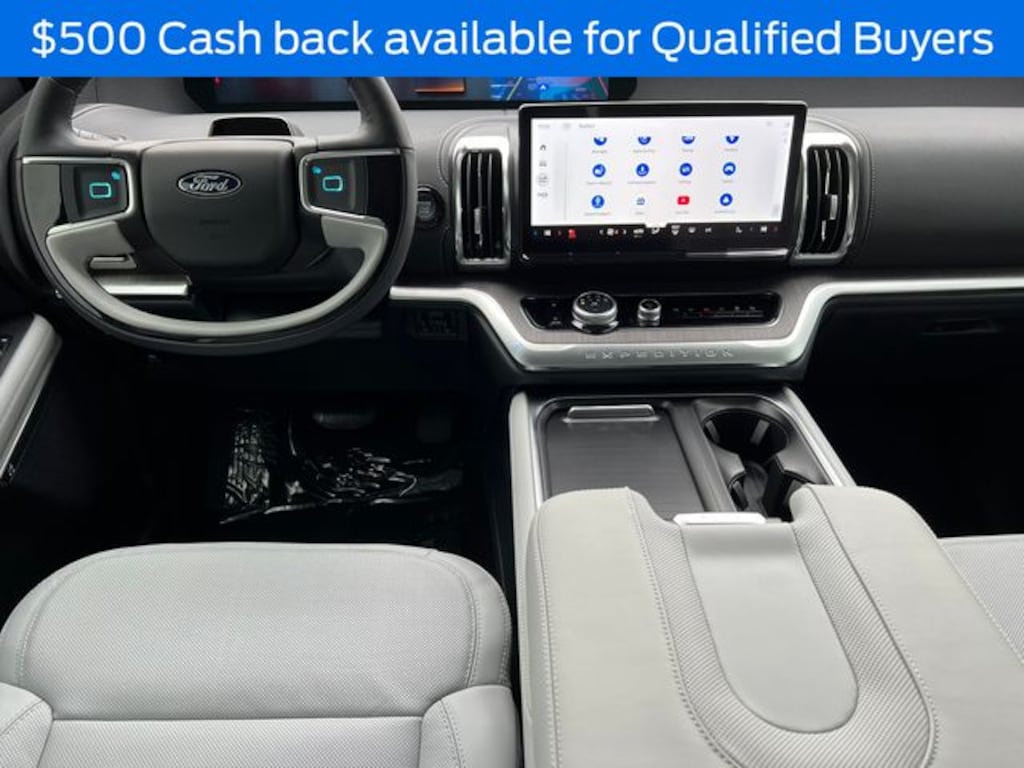 4WD, Black Headlamp Bezel w/Satin Trim Applique, BlueCruise Equipped (One-Time Purchase), Carbon Black Front Bumper w/Lit Grille Bar, Continuous Control Damping Suspension, Driver's Package, Engine Sound Enhancer, Front Door Scuff Plates w/Met Insert & Bright Rear, High Flow Exhaust System, Multicontour Active Motion Lthr Frnt Captains Chairs, Platinum Ultimate Interior Package, Platinum Ultimate Package, Polished Stainless Steel Beltline Molding, Power moonroof: Vista Roof, Radio: B&O Sound System by Bang & Olufsen, Radio: B&O Unleashed Sound System by Bang & Olufsen, Rear Seat Radio Controls, Rear Side Windows Laminated Glass, Satin Aluminum Expedition Lettering On Side & Hood, Satin Aluminum Platinum Badge On Tailgate, Signature Grille Lighting, SiriusXM w/360L, 10 Speakers, 2nd Row Power-Folding Captain's Chairs, 3.73 Axle Ratio, 3rd row seats: split-bench, 4-Wheel Disc Brakes, ABS brakes, Adjustable pedals, Air Conditioning, Alloy wheels, AM/FM radio: SiriusXM with 360L, Apple CarPlay/Android Auto, Auto High-beam Headlights, Auto-dimming door mirrors, Auto-dimming Rear-View mirror, Automatic temperature control, Brake assist, Bumpers: body-color, Compass, Delay-off headlights, Driver door bin, Driver vanity mirror, Dual front impact airbags, Dual front side impact airbags, Electronic Stability Control, Emergency communication system: 911 Assist, Equipment Group 600A Standard Package, Exterior Parking Camera Rear, Four wheel independent suspension, Front anti-roll bar, Front Bucket Seats, Front Center Armrest, Front dual zone A/C, Front reading lights, Fully automatic headlights, Garage door transmitter, Genuine wood dashboard insert, Genuine wood door panel insert, Heated & Ventilated Leather Front Captain's Chairs, Heated door mirrors, Heated front seats, Heated rear seats, Heated steering wheel, Illuminated entry, Leather steering wheel, Low tire pressure warning, Memory seat, Navigation System, Occupant sensing airbag, Outside temperature display, Overhead airbag, Overhead console, Panic alarm, Passenger door bin, Passenger vanity mirror, Pedal memory, Power door mirrors, Power driver seat, Power passenger seat, Power steering, Power windows, Radio data system, Rain sensing wipers, Rear air conditioning, Rear anti-roll bar, Rear reading lights, Rear window defroster, Rear window wiper, Reclining 3rd row seat, Remote keyless entry, Security system, Speed control, Speed-sensing steering, Speed-Sensitive Wipers, Split folding rear seat, Spoiler, Steering wheel memory, Steering wheel mounted audio controls, Tachometer, Telescoping steering wheel, Tilt steering wheel, Traction control, Trip computer, Turn signal indicator mirrors, Variably intermittent wipers, Ventilated front seats, Voltmeter, Wheels: 20" Ebony Bright Machined Aluminum, Wheels: 24" Tarnished Dark Metallic (DISC), WINDOW TINT, 4WD, Black Headlamp Bezel w/Satin Trim Applique, BlueCruise Equipped (One-Time Purchase), Carbon Black Front Bumper w/Lit Grille Bar, Continuous Control Damping Suspension, Driver's Package, Engine Sound Enhancer, Front Door Scuff Plates w/Met Insert & Bright Rear, High Flow Exhaust System, Multicontour Active Motion Lthr Frnt Captains Chairs, Platinum Ultimate Interior Package, Platinum Ultimate Package, Polished Stainless Steel Beltline Molding, Power moonroof: Vista Roof, Radio: B&O Sound System by Bang & Olufsen, Radio: B&O Unleashed Sound System by Bang & Olufsen, Rear Seat Radio Controls, Rear Side Windows Laminated Glass, Satin Aluminum Expedition Lettering On Side & Hood, Satin Aluminum Platinum Badge On Tailgate, Signature Grille Lighting, Siri Price includes: $500 - 2026 Military Recognition Exclusive Cash Reward. Exp. 01/04/2027 Price includes dealer adde