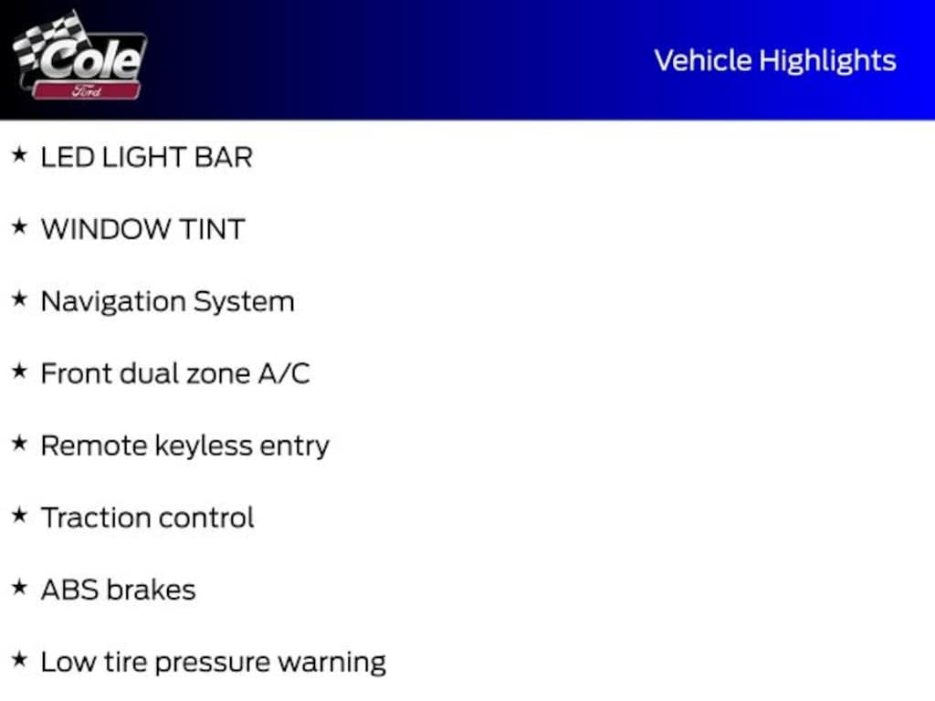 Dealer Disclosure: New Car Prices are based off of Ford Employee A/Z Plan price. Sales Tax, Title, License Fee, Registration Fee, Dealer Documentary Fee ($280), Finance Charges and Emission Testing Fees (if applicable) are additional to the advertised price. See Dealer for Details. Price includes: $1000 - 2025 Expanded Military Recognition Exclusive Cash Reward. Exp. 11/19/2025 Price includes dealer added accessories.