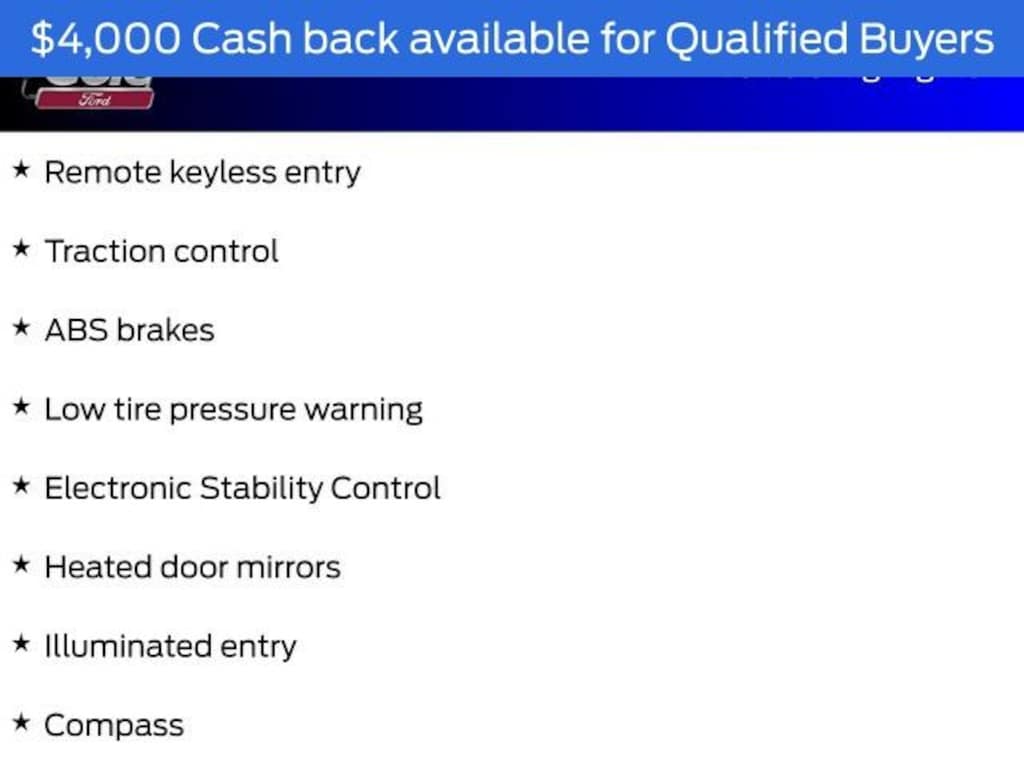 Dealer Disclosure: New Car Prices are based off of Ford Employee A/Z Plan price. Sales Tax, Title, License Fee, Registration Fee, Dealer Documentary Fee ($280), Finance Charges and Emission Testing Fees (if applicable) are additional to the advertised price. See Dealer for Details. Price includes: $3500 - Retail Customer Cash. Exp. 04/30/2026 $500 - 2026 Military Recognition Exclusive Cash Reward. Exp. 01/04/2027