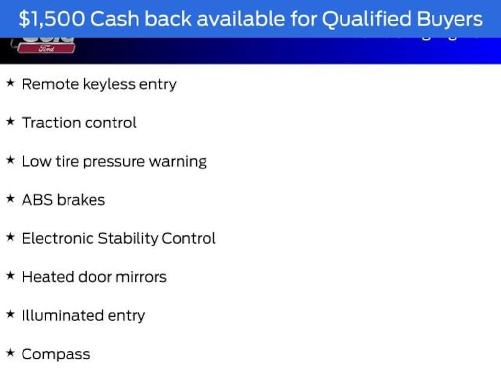 Dealer Disclosure: New Car Prices are based off of Ford Employee A/Z Plan price. Sales Tax, Title, License Fee, Registration Fee, Dealer Documentary Fee ($280), Finance Charges and Emission Testing Fees (if applicable) are additional to the advertised price. See Dealer for Details. Price includes: $1000 - Retail Customer Cash. Exp. 04/30/2026 $500 - 2026 Military Recognition Exclusive Cash Reward. Exp. 01/04/2027