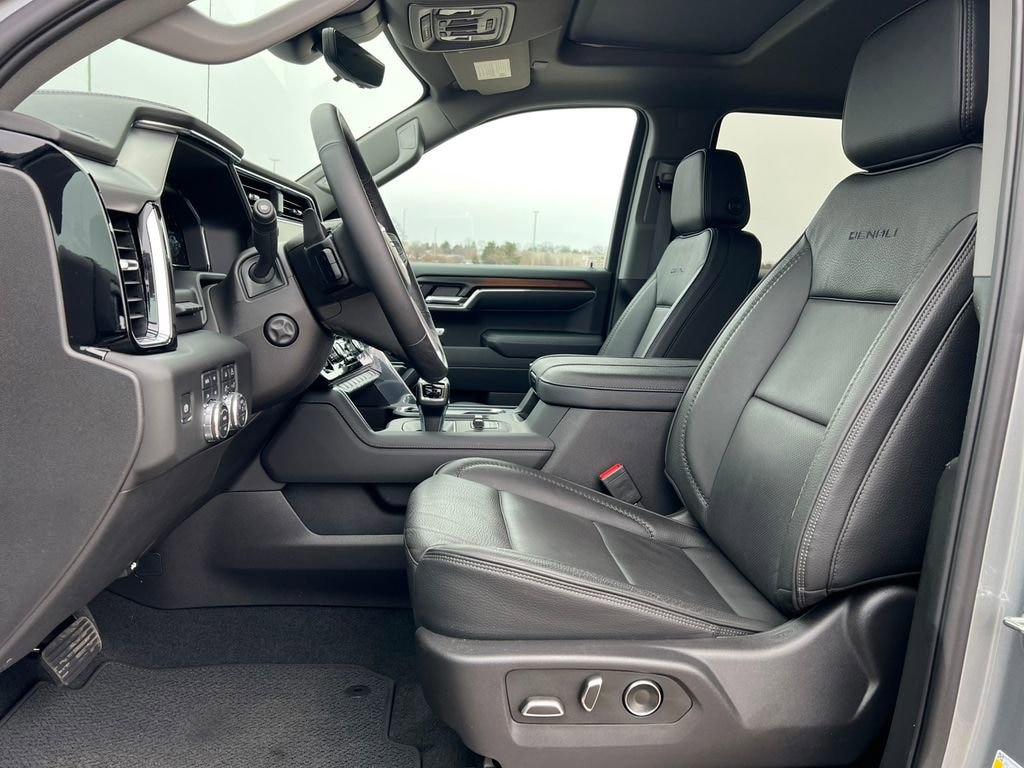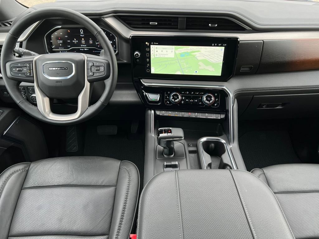 10-Speed Automatic, 4WD, Black Leather, 12-Way Power Driver Seat Adjuster w/Lumbar, 12-Way Power Passenger Seat Adjuster w/Lumbar, 120-Volt Bed Mounted Power Outlet, 120-Volt Interior Power Outlet, 170 Amp Alternator, 2 Charge/Data USB Ports Inside Center Console, 2 Type-C Charge-Only Rear USB Ports, 2 USB Ports, 3.23 Rear Axle Ratio, 4-Wheel Disc Brakes, 7 Speakers, ABS brakes, Adaptive suspension, Air Conditioning, Alloy wheels, AM/FM radio: SiriusXM with 360L, Apple CarPlay/Android Auto, Auto High-beam Headlights, Auto-dimming door mirrors, Auto-dimming Rear-View mirror, Auto-Locking Rear Differential, Automatic temperature control, Auxiliary External Transmission Oil Cooler, Bed View Camera, Brake assist, Buckle to Drive, Bumpers: body-color, Chrome Header w/Signature Denali Chrome Grille, Chrome Recovery Hooks, Chrome Wheel To Wheel Assist Steps, Color-Keyed Carpeting Floor Covering, Compass, Deep-Tinted Glass, Delay-off headlights, Denali Premium Suspension w/Adaptive Ride Control, Denali Reserve Package, Driver door bin, Driver Memory, Driver vanity mirror, Dual front impact airbags, Dual front side impact airbags, Electric Rear-Window Defogger, Electronic Stability Control, Emergency communication system: OnStar, Enhanced Automatic Emergency Braking, Floor-Mounted Center Console, Following Distance Indicator, Forge Perforated Leather Seat Trim, Forward Collision Alert, Front anti-roll bar, Front Bucket Seats, Front Center Armrest, Front dual zone A/C, Front fog lights, Front Pedestrian Braking, Front Rain-Sensing Wipers, Front reading lights, Front wheel independent suspension, Fully automatic headlights, Garage door transmitter, Genuine wood console insert, Genuine wood dashboard insert, Genuine wood door panel insert, GMC MultiPro Power Steps, HD Surround Vision, Heated 2nd Row Outboard Seats, Heated door mirrors, Heated Driver & Front Outboard Passenger Seating, Heated front seats, Heated rear seats, Heated steering wheel, Heavy-Duty Air Filter, Hill Descent Control, Hitch Guidance, Hitch View, Illuminated entry, In-Vehicle Trailering System App, Integrated Trailer Brake Controller, IntelliBeam Automatic High Beam On/Off, Keyless Open & Start, Lane Keep Assist w/Lane Departure Warning, LED Cargo Area Lighting, Low tire pressure warning, Memory seat, Multicolor 15 Diagonal Head-Up Display, Navigation System, Occupant sensing airbag, OnStar Services Capable, Outside temperature display, Overhead airbag, Overhead console, Panic alarm, Passenger door bin, Passenger vanity mirror, Perimeter Lighting, Power Door Locks, Power door mirrors, Power driver seat, Power Front Passenger Windows w/Express Up/Down, Power Front Windows w/Driver Express Up/Down, Power passenger seat, Power Rake & Telescoping Steering Column, Power Rear Windows w/Express Down, Power Sliding Rear Window w/Rear Defogger, Power steering, Power Sunroof, Power windows, Preferred Equipment Group 5SA, Premium Bose 7-Speaker Sound System, Push Button Start, Radio data system, Radio: Premium GMC Infotainment Audio System, Rain sensing wipers, Rear Camera Mirror, Rear Cross Traffic Braking, Rear Pedestrian Detection, Rear reading lights, Rear seat center armrest, Rear step bumper, Rear Wheelhouse Liners, Rear window defroster, Remote keyless entry, Remote Vehicle Starter System, Safety Alert Seat, Security system, SiriusXM w/360L Trial Subscription, Speed control, Speed-sensing steering, Split folding rear seat, Spray-On Pickup Bedliner w/GMC Logo, Steering Wheel Audio Controls, Steering wheel mounted audio controls, Tachometer, Technology Package, Telescoping steering wheel, Theft Deterrent System (Unauthorized Entry),