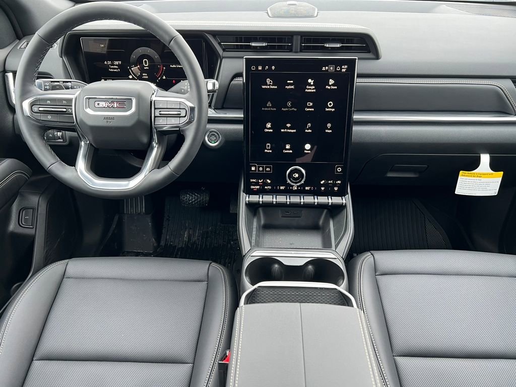 AWD, 2-Way Power Driver Lumbar Seat Adjuster, 3-Channel Programmable Universal Home Remote, 3.47 Final Drive Axle Ratio, 4-Wheel Disc Brakes, 6 Speakers, 6-Speaker Audio System Feature, 8-Way Power Driver Seat Adjuster, ABS brakes, Air Conditioning, All-Weather Cargo Mat, Alloy wheels, AM/FM radio: SiriusXM, Auto High-beam Headlights, Automatic temperature control, Autosense Hands-Free Programmable Power Liftgate, Brake assist, Brushed Aluminum Roof Rails, Bumpers: body-color, Cabin Humidity and Windshield Temperature Sensor, Cargo Net, Compass, Convenience Package II, CoreTec Seat Trim, Delay-off headlights, Driver 6-Way Manual Seat Adjuster, Driver and Front Passenger Heated Seats, Driver door bin, Driver vanity mirror, Dual front impact airbags, Dual front side impact airbags, Dual-Zone Automatic Climate Control, Ebony Twilight Metallic Roof, Ebony Twilight Mirror Caps, Electronic Stability Control, Elevation Premium Package, Emergency communication system: OnStar and GMC connected services capable, Floor Liner Package, Four wheel independent suspension, Front All-Weather Floor Liners, Front anti-roll bar, Front Bucket Seats, Front Center Armrest, Front Intermittent RainSense Wipers, Front Passenger 4-Way Manual Seat Adjuster, Front reading lights, Fully automatic headlights, Heated door mirrors, Heated front seats, Heated steering wheel, Heated Wiper Park, Illuminated entry, Low tire pressure warning, Navigation System, Occupant sensing airbag, Outside temperature display, Overhead airbag, Overhead Sunglass Storage, Panic alarm, Passenger door bin, Passenger vanity mirror, Power door mirrors, Power steering, Power windows, Preferred Equipment Group 3SB, Premium Cloth Seat Trim, Radio data system, Radio: Premium GMC Infotainment System, Rear air conditioning, Rear anti-roll bar, Rear seat center armrest, Rear window defroster, Rear window wiper, Remote keyless entry, Second Row All-Weather Mat, Security system, SiriusXM with 360L Trial Subscription, Speed control, Speed-sensing steering, Split folding rear seat, Spoiler, Sport steering wheel, Steering wheel mounted audio controls, Tachometer, Telescoping steering wheel, Tilt steering wheel, Traction control, Trip computer, Variably intermittent wipers, Wheels: 17 Grazen Metallic Machined Aluminum, Wheels: 19 Technical Gray Machine-Face Aluminum, Wireless Apple CarPlay/Wireless Android Auto, Wireless Phone Charging For Portable Devices, AWD.