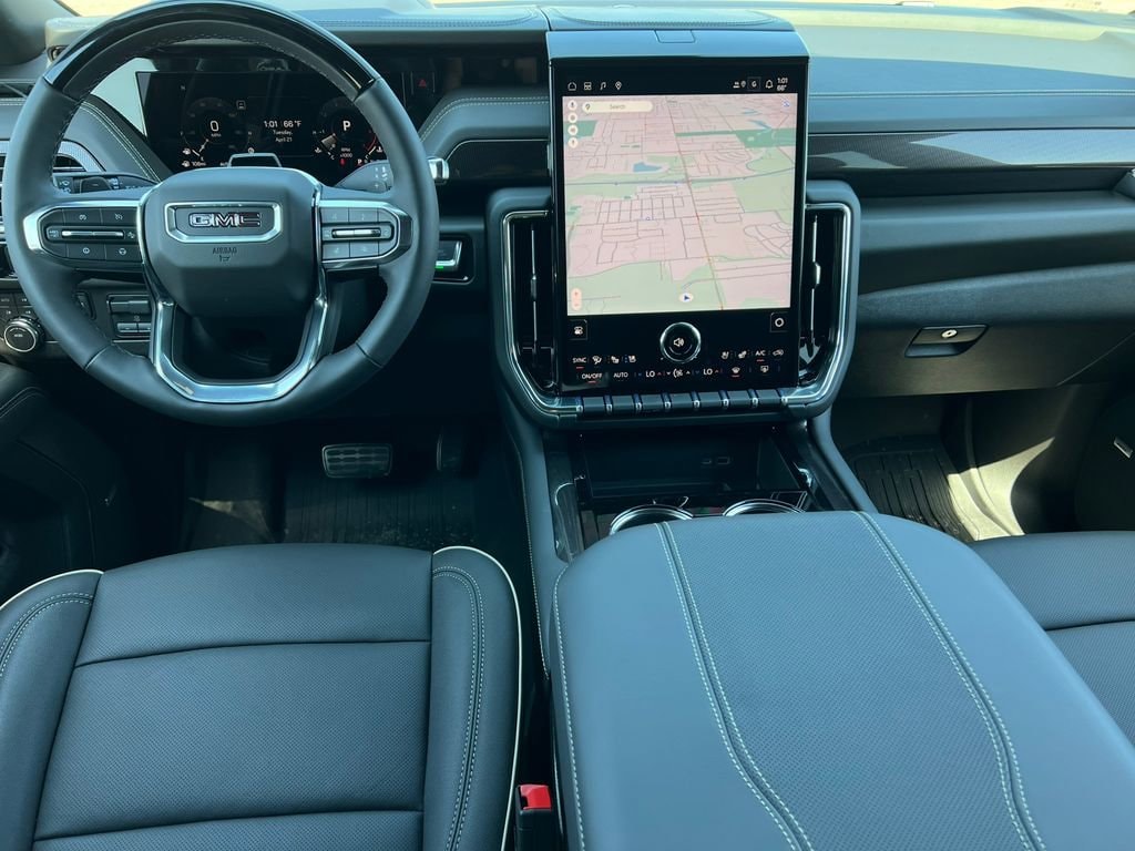 4WD, 10 Speakers, 15 Diagonal Multi-Color Head-Up Display, 1st and 2nd Rows All-Weather Floor Liners, 3.23 Rear Axle Ratio, 3rd Row All-Weather Floor Liners, 3rd row seats: split-bench, 4-Way Power Driver Lumbar Seat Adjuster, 4-Way Power Front Passenger Lumbar Seat Adjuster, 4-Wheel Disc Brakes, ABS brakes, Air Conditioning, All-Weather Cargo Mat, Alloy wheels, AM/FM radio: SiriusXM with 360L, Apple CarPlay/Android Auto, Audio memory, Auto High-beam Headlights, Auto-dimming door mirrors, Auto-dimming Rear-View mirror, Automatic temperature control, Blind Zone Steering Assist with Trailering, Bodyside moldings, Bose 10-Speaker Surround with CenterPoint, Brake assist, Bumpers: body-color, Compass, CoreTech/Perforated Leather-Appointed Seating, Delay-off headlights, Driver Attention Assist, Driver door bin, Driver vanity mirror, Dual front impact airbags, Dual front side impact airbags, Dual-Pane Panoramic Power Sunroof, Electronic Stability Control, Elevation Premium Package, Emergency communication system: OnStar and GMC connected services capable, Exterior Parking Camera Rear, Extra Capacity Cooling System, Floor Console, Floor Liner Package, Four wheel independent suspension, Front anti-roll bar, Front Bucket Seats, Front Center Armrest, Front dual zone A/C, Front fog lights, Front reading lights, Fully automatic headlights, Garage door transmitter, Heated door mirrors, Heated Driver and Front Passenger Seats, Heated front seats, Heated rear seats, Heated steering wheel, Hill Descent Control, Hitch View, Illuminated entry, Illuminated Front Red GMC Emblem, Inside Rearview Auo-Dimming Rear Camera Mirror, Integrated Trailer Brake Controller, Low tire pressure warning, Max Trailering Package, Memory seat, Navigation system: GMC Connected Navigation, Occupant sensing airbag, Outside temperature display, Overhead airbag, Overhead console, Panic alarm, Passenger door bin, Passenger vanity mirror, Perforated Heated and Ventilated Driver and Front Passenger Seats, Power door mirrors, Power driver seat, Power Liftgate, Power passenger seat, Power Release 2nd Row Bucket Seats, Power steering, Power windows, Preferred Equipment Group 4SA, Premium Smooth Ride Suspension, Radio: 16.8 Diagonal Premium GMC Infotainment System, Rain sensing wipers, Rear air conditioning, Rear anti-roll bar, Rear reading lights, Rear seat center armrest, Rear Seat Media System, Rear window defroster, Rear window wiper, Remote keyless entry, Security system, SiriusXM with 360L, Smart Trailer Integration Indicator, Speed control, Speed-sensing steering, Split folding rear seat, Spoiler, Sport Pedal Cover Kit, Steering wheel mounted audio controls, Super Cruise, Tachometer, Technology Package, Telescoping steering wheel, Tilt steering wheel, Traction control, Trip computer, Turn signal indicator mirrors, Variably intermittent wipers, Voltmeter, Wheel Locks (set of 4), Wheels: 20 x 9 Machined and Painted, Wheels: 22 x 9 Polished Aluminum, 4WD.