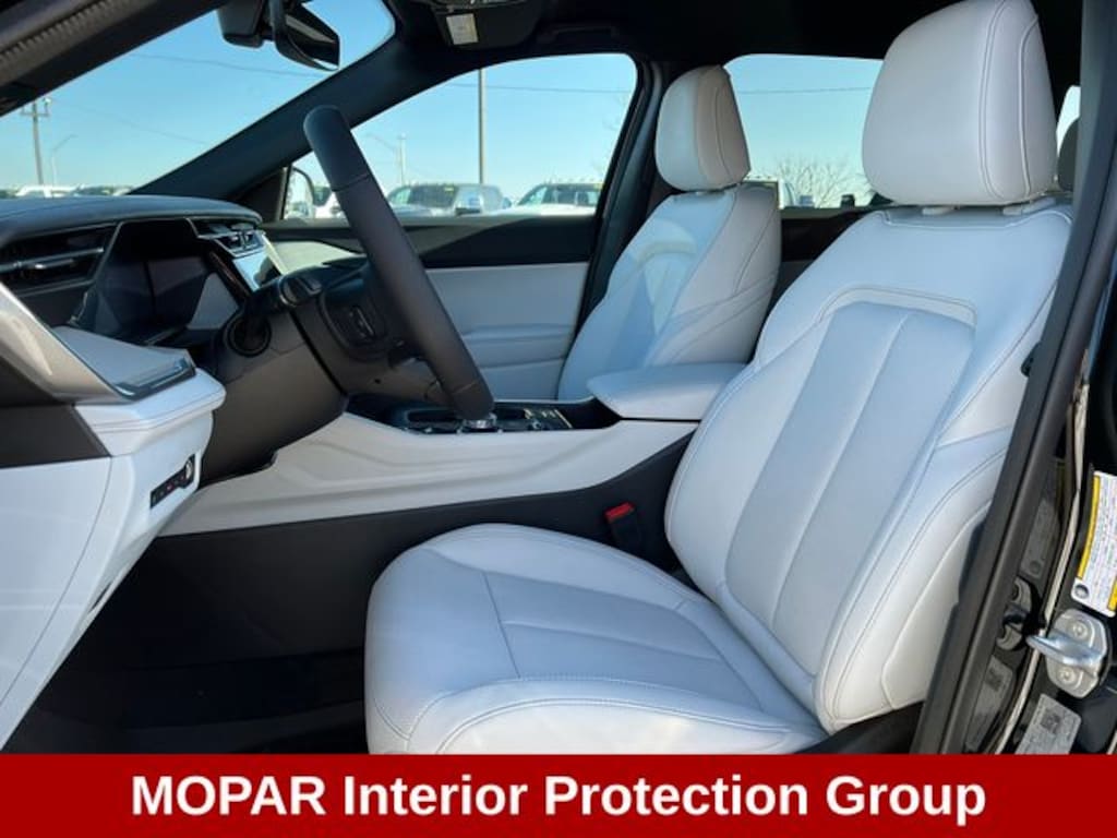 Stepping inside, you'll be greeted by the luxurious Capri Leatherette Perforated Seats, complete with Cognac Interior Stitching. The heated steering wheel and front seats provide unparalleled comfort, while the wireless charging pad ensures your devices are always powered up. The Uconnect 5 infotainment system with a 12.3" display puts a wealth of connectivity and entertainment at your fingertips, seamlessly integrating with Apple CarPlay and Android Auto.