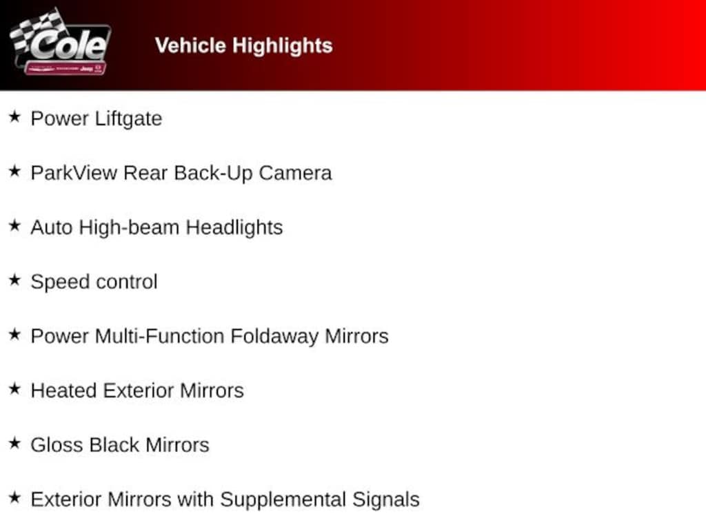 Elevate your driving experience with the Jeep Cherokee Laredo's impressive array of safety and convenience features. The ParkView Rear Back-Up Camera and Auto High-beam Headlights make navigating with confidence, while the Dual-Pane Panoramic Sunroof and Heated Steering Wheel add a touch of luxury to every journey.